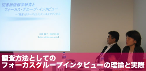 平成18年度より二年間,科学研究費補助金を受けて,日本図書館情報学会常任理事を中心として構成された研究組織により,「エビデンスベーストアプローチによる図書館情報学研究の確立」に関する研究を行っています。その第六回ワークショップでは、「フォーカス・グループ・インタビュー(FGI)」をテーマとして採り上げます。FGIは、主に、マーケティング分野において発展してきた調査手法であり、グループ・ダイナミクスの作用によって、単独のインタビュー調査では得られない、より効果的な情報の収集を可能にする手法であると言われています。現在では、様々な分野において、FGIが用いられるようになっており、FGIのマニュアル、FGIを用いた研究論文などが多数刊行されています。今回のワークショップでは、図書館情報学分野において、FGIを活用した調査を行った経験のあるお二人の研究者と、実際に、FGIを含めたマーケティング・リサーチを手がけている企業の代表者の方を迎え、プレゼンテーションをおこなっていただくとともに、来場された参加者の方々を交えたディスカッションを行うことによって,FGI調査におけるエビデンスとは何かについての知見共有を目指しています。多数の方々のご参加をお待ちしております。