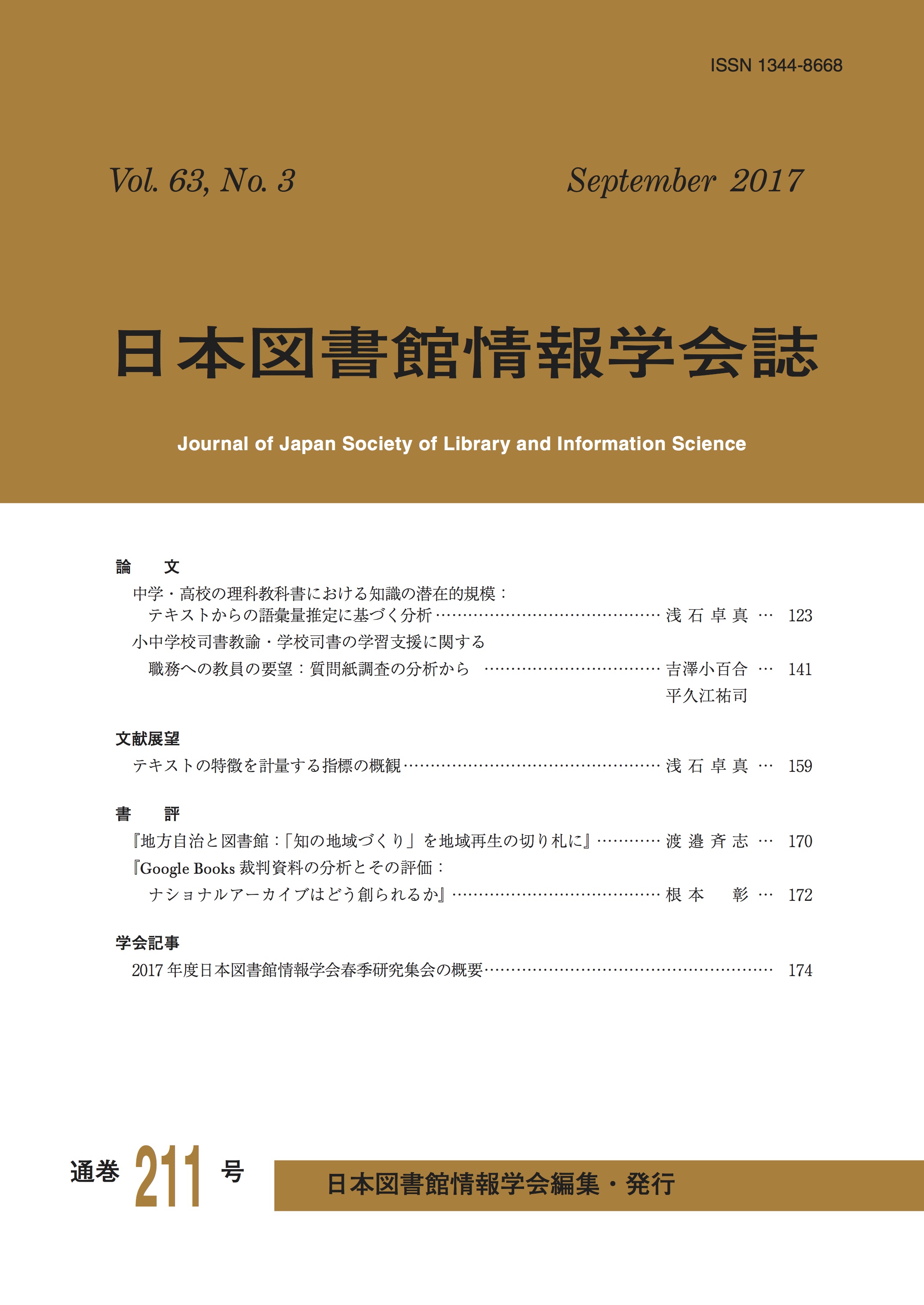 【投稿先】 日本図書館情報学会 編集委員会 journal@jslis.jp